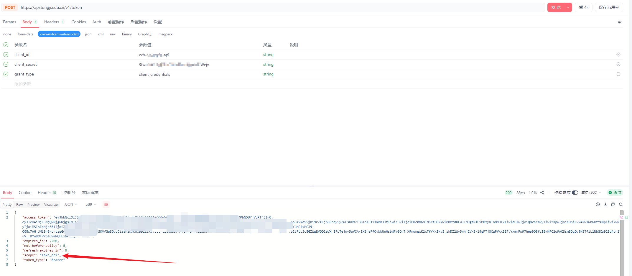 在调用 API 接口时,需要使用对应的 clientId 和 client_secret 和 grant_type 获取 access_token,该 token 中包含了该 clientId 所拥有的权限信息。